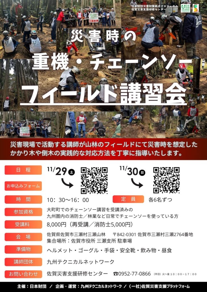 災害時の重機・チェーンソーフィールド講習会を開催いたします。