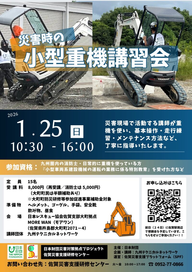 • 参加資格:九州圏内の消防士・日常的に重機を使っている方。小型車両系建設機械の運転の業務に係る特別教育を受けた方など