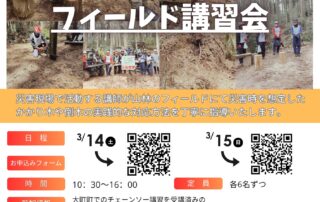 災害時の重機・チェーンソーフィールド講習会を開催いたします。 災害現場で活動する講師が山林のフィールドにて災害時を想定したかかり木や倒木の実践的な対応方法を丁寧に指導いたします。 日程:3月14日(土)/3 [...]
