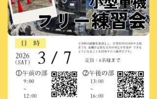 小型重機練習会を開催いたします。 災害時の経験を教訓とし、佐賀県内の団体や支援者でも重機が必要な災害の対応や作業ができるようになることを目指す自主練習会です。 日程: ①2026年3月7日(土)午前の部 [...]