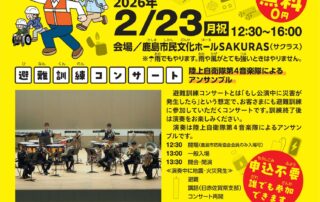 鹿島市において、かしま防災フェスタが開催されますので、ご案内いたします。当団体もトイレカーの展示などを行う予定です。開催日令和8年2月23日(月曜日・祝日)開催時間12時30分から16時00分開催場所鹿島 [...]